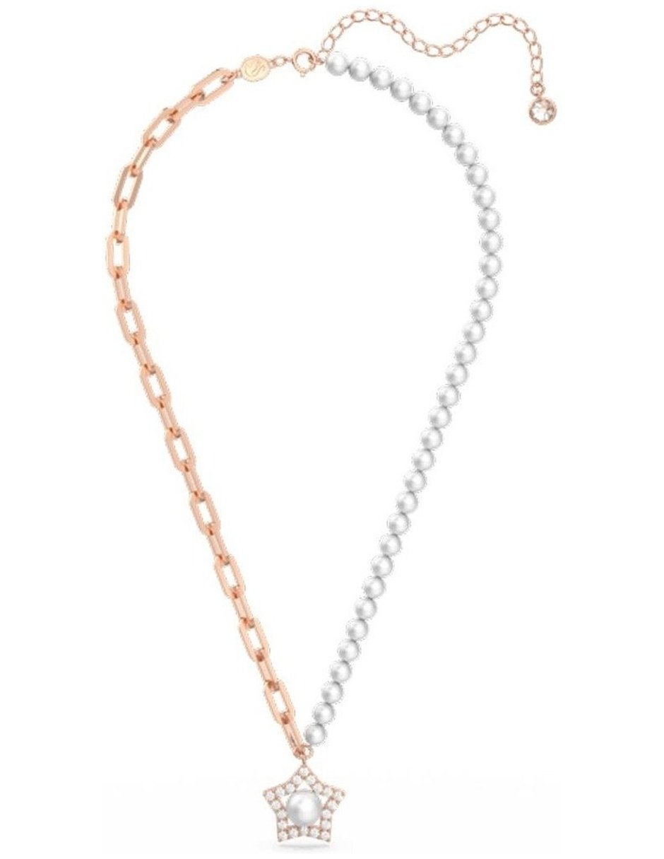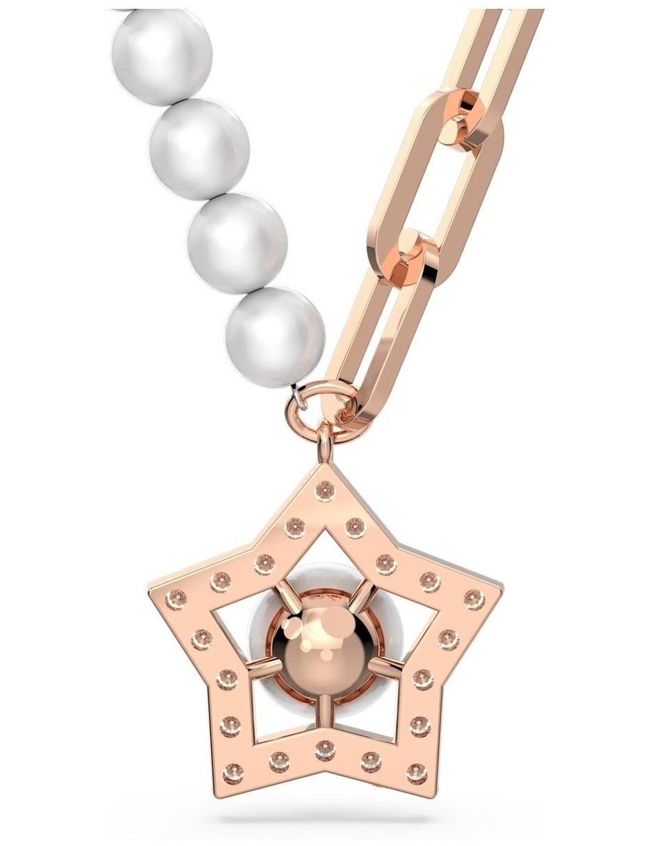 Colgante Stella, Crystal pearls, Estrella, Blanco, Baño tono oro rosa