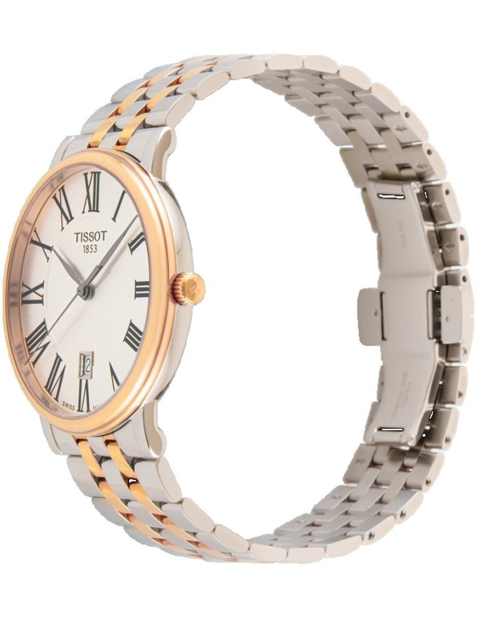 El modelo T122.410.22.033.00 de Tissot combina la tradición relojera suiza con un diseño refinado y contemporáneo. Con caja redonda de 40 mm de diámetro y 6 mm de grosor, elaborada en acero inoxidable, ofrece una presencia equilibrada y sofisticada en la muñeca. El dial plateado, protegido por un cristal de zafiro, aporta claridad y resistencia para el uso diario. Impulsado por movimiento cuarzo, garantiza precisión y confiabilidad constante. La correa de acero inoxidable en color plateado y oro rosa, con cierre de mariposa con pulsadores y ancho de 20 mm, brinda comodidad y seguridad. Con resistencia al agua de 50 metros o 5 ATM, apto para uso diario y contacto moderado con el agua, incorpora función de fecha. Pertenece a colección Classic Carson, ideal para hombres que valoran estilo, calidad y precisión en cada detalle.