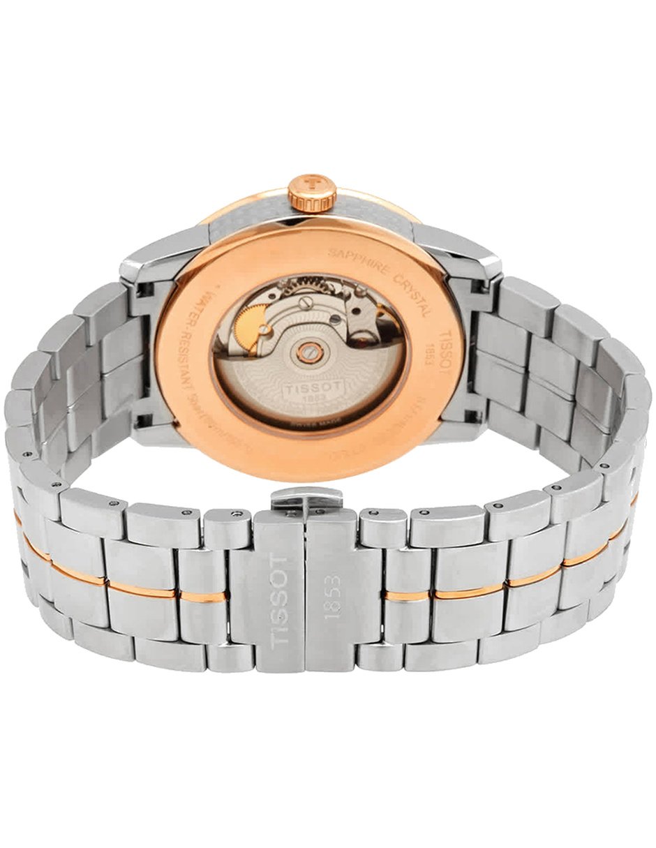El modelo T086.407.22.067.00 de Tissot combina la tradición relojera suiza con un diseño refinado y contemporáneo. Con caja redonda de 41 mm de diámetro y 10 mm de grosor, elaborada en acero inoxidable, ofrece una presencia equilibrada y sofisticada en la muñeca. El dial negro, protegido por un cristal de zafiro, aporta claridad y resistencia para el uso diario. Impulsado por movimiento automatico, garantiza precisión y confiabilidad constante. La correa de acero inoxidable en color plateado y oro rosa pvd, con cierre de mariposa con pulsadores laterales de seguridad. y ancho de 22 mm, brinda comodidad y seguridad. Con resistencia al agua de 50 metros o 5 ATM, apto para uso diario y contacto moderado con el agua, incorpora función de fecha. Pertenece a colección Classic, ideal para hombres que valoran estilo, calidad y precisión en cada detalle.