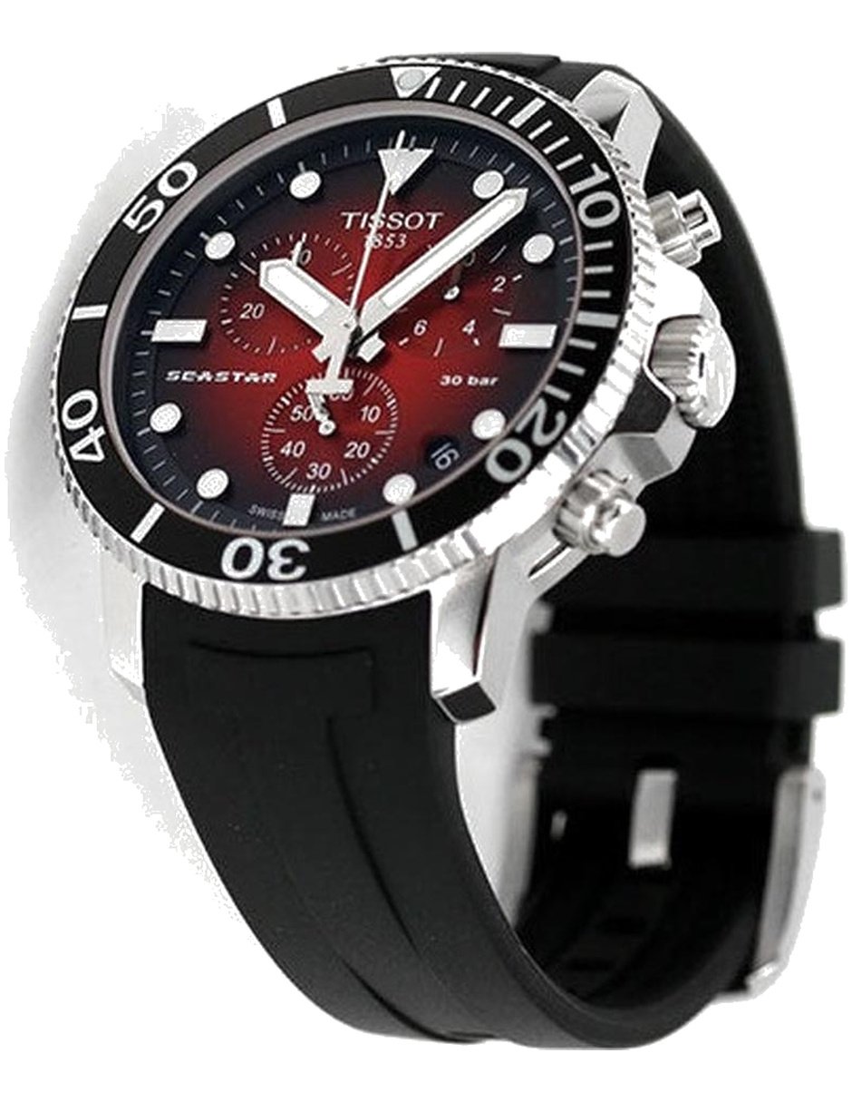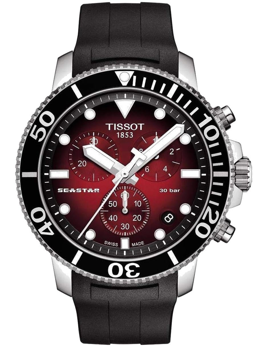 El modelo T120.417.17.421.00 de Tissot combina la tradición relojera suiza con un diseño refinado y contemporáneo. Con caja redonda de 46 mm de diámetro y 13 mm de grosor, elaborada en acero inoxidable, ofrece una presencia equilibrada y sofisticada en la muñeca. El dial rojo, protegido por un cristal de zafiro, aporta claridad y resistencia para el uso diario. Impulsado por movimiento cuarzo, garantiza precisión y confiabilidad constante. La correa de silicona en color negro, con cierre hebilla y ancho de 22 mm, brinda comodidad y seguridad. Con resistencia al agua de 300 metros o 30 ATM, apto para buceo recreativo, incorpora función de fecha, cronógrafo. Pertenece a colección Seastar, ideal para hombres que valoran estilo, calidad y precisión en cada detalle.