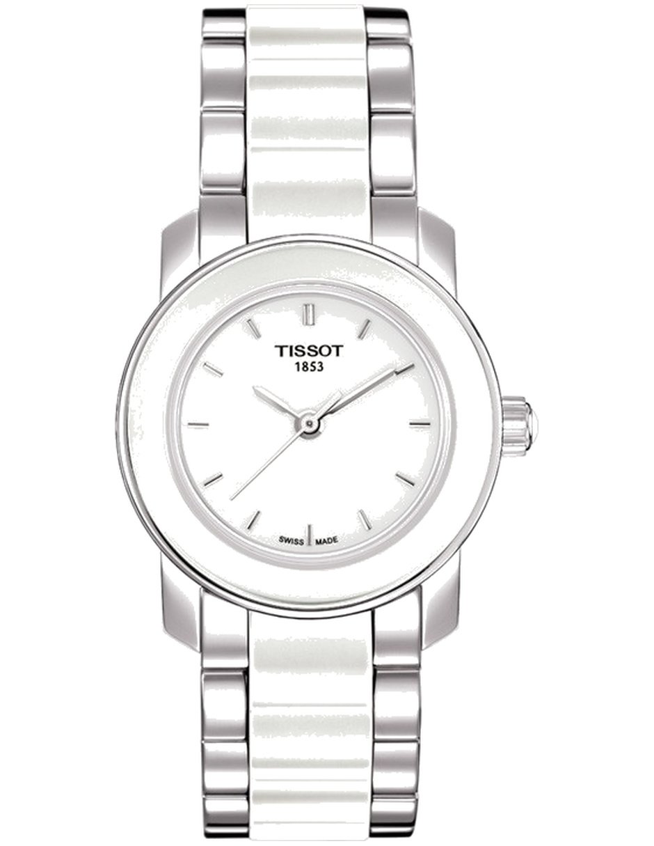 El modelo T064.210.22.011.00 de Tissot combina la tradición relojera suiza con un diseño refinado y contemporáneo. Con caja redonda de 28 mm de diámetro y 7 mm de grosor, elaborada en acero inoxidable y ceramica, ofrece una presencia equilibrada y sofisticada en la muñeca. El dial blanco, protegido por un cristal de zafiro, aporta claridad y resistencia para el uso diario. Impulsado por movimiento cuarzo, garantiza precisión y confiabilidad constante. La correa de acero inoxidable y ceramica en color plateado y blanco, con cierre desplegable y ancho de 16 mm, brinda comodidad y seguridad. Con resistencia al agua de 30 metros o 3 ATM, ofrece protección frente a salpicaduras y el uso cotidiano. Pertenece a colección T-Trend Cera, ideal para mujeres que valoran estilo, calidad y precisión en cada detalle.