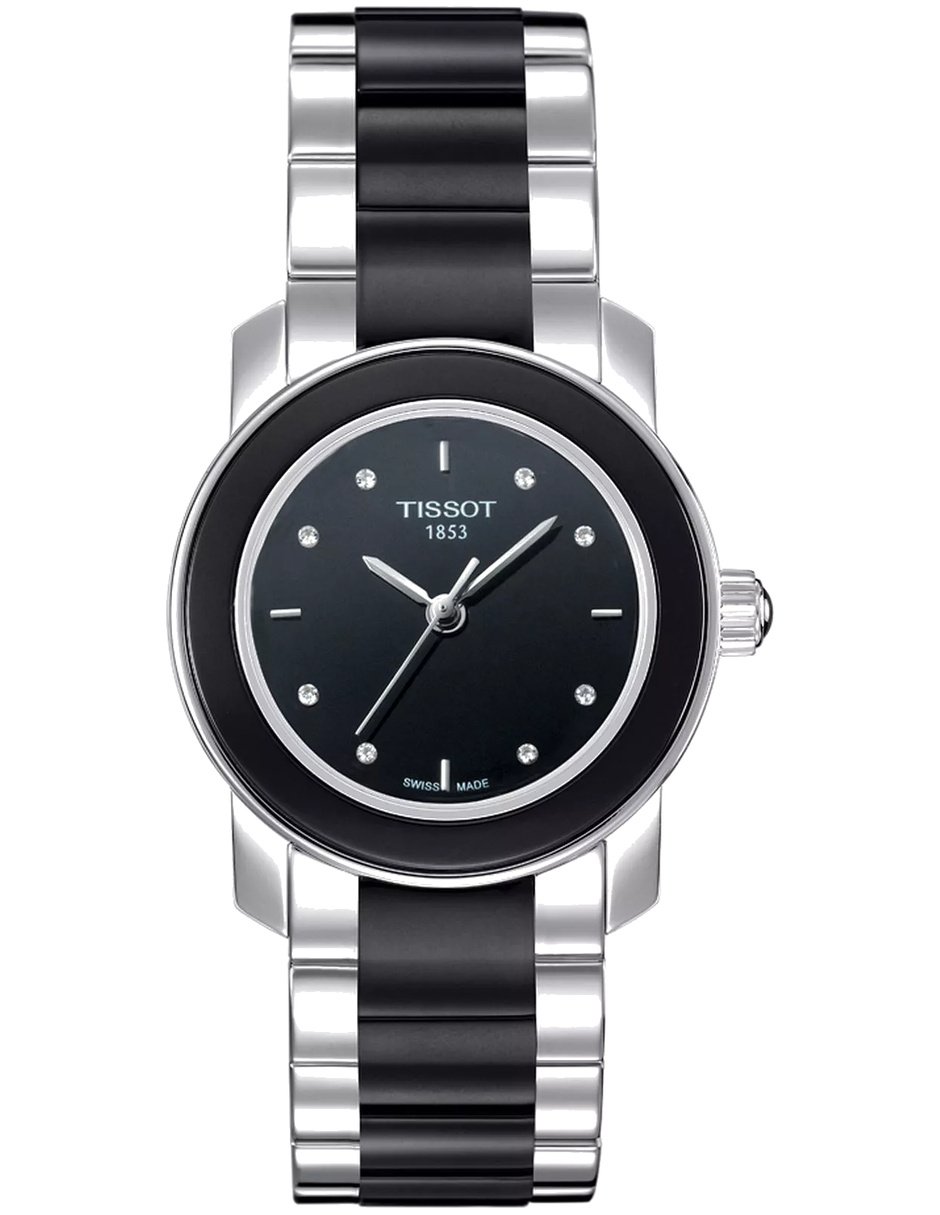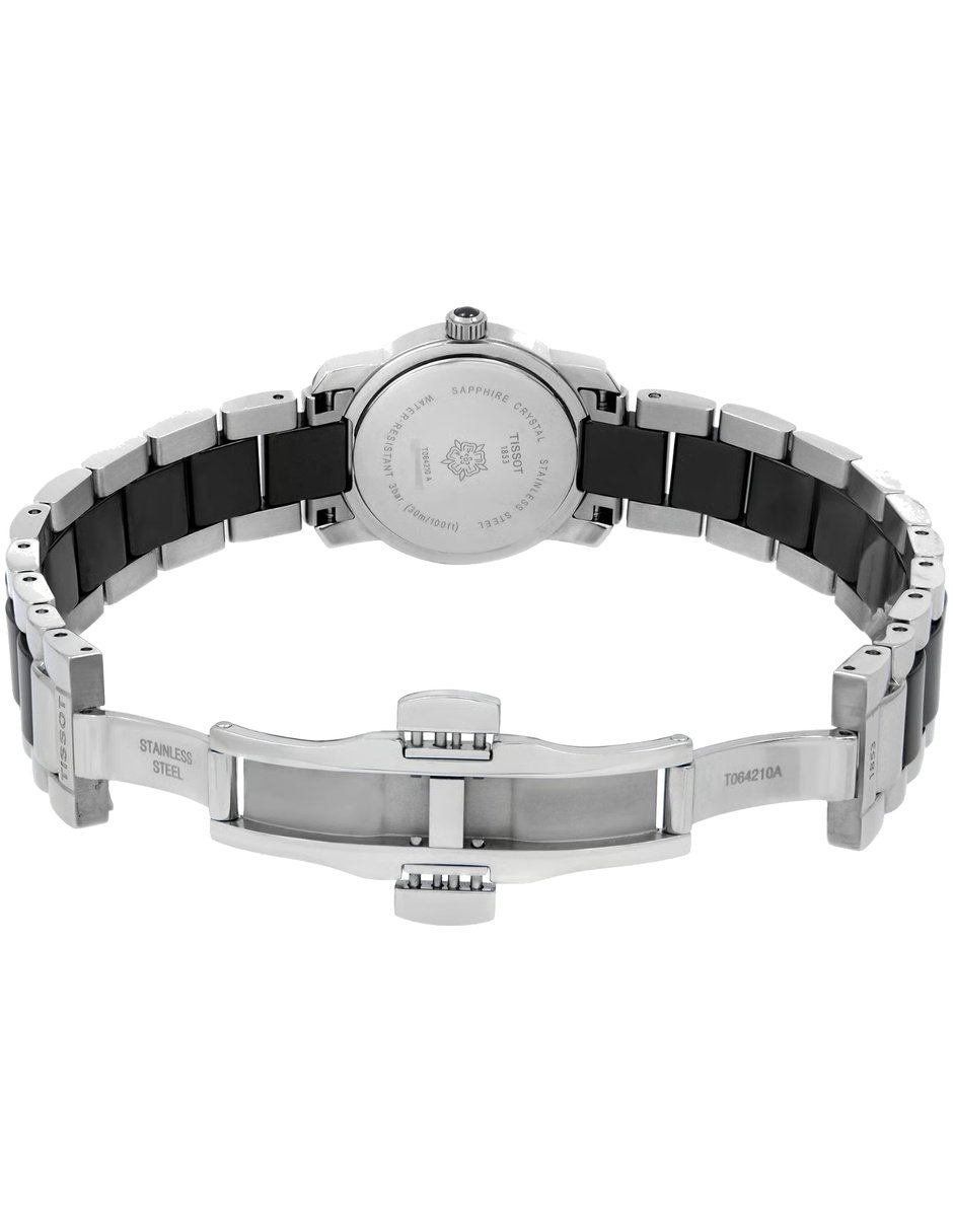 El modelo T064.210.22.056.00 de Tissot combina la tradición relojera suiza con un diseño refinado y contemporáneo. Con caja redonda de 28 mm de diámetro y 7 mm de grosor, elaborada en acero inoxidable y ceramica, ofrece una presencia equilibrada y sofisticada en la muñeca. El dial negro, protegido por un cristal de zafiro, aporta claridad y resistencia para el uso diario. Impulsado por movimiento cuarzo, garantiza precisión y confiabilidad constante. La correa de acero inoxidable y ceramica en color plateado y negro, con cierre desplegable y ancho de 16 mm, brinda comodidad y seguridad. Con resistencia al agua de 30 metros o 3 ATM, ofrece protección frente a salpicaduras y el uso cotidiano. Pertenece a colección T-Trend Cera, ideal para mujeres que valoran estilo, calidad y precisión en cada detalle.