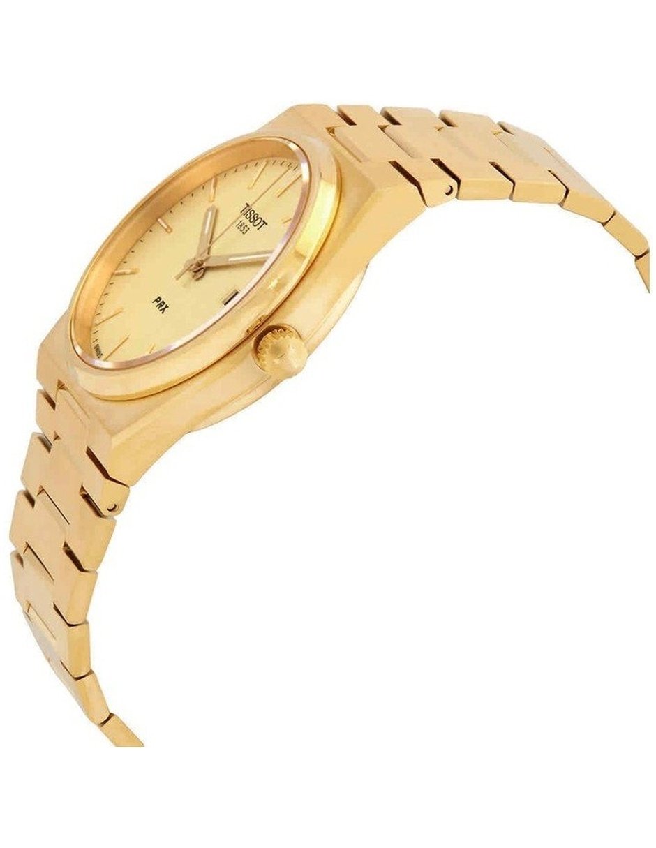 El Tissot PRX T137.410.33.021.00 es mucho más que un reloj: es un ícono de estilo que revive la estética clásica de los años 70 con la calidad y precisión de la relojería suiza moderna. Con su caja y brazalete de acero inoxidable revestidos en PVD dorado, este modelo combina lujo y sofisticación en un diseño delgado y elegante que se adapta perfectamente a la muñeca. Cuenta con un movimiento de cuarzo suizo ultra preciso y un cristal de zafiro resistente a los arañazos, que garantiza durabilidad y una visión siempre clara de su atractiva esfera color champagne. Su diseño minimalista y refinado se completa con índices aplicados y agujas con tratamiento luminiscente, lo que ofrece excelente legibilidad incluso en condiciones de poca luz.